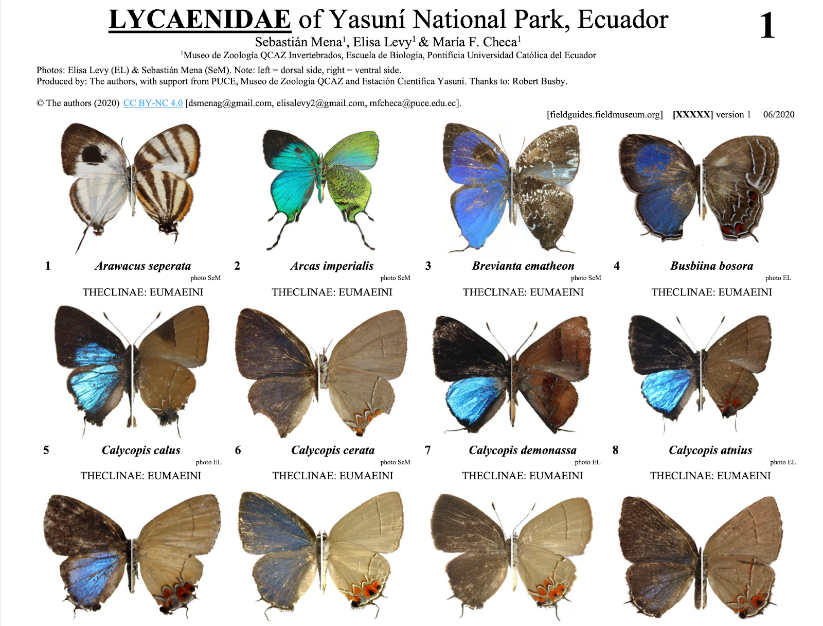 We have implemented more than 20 workshops about butterfly monitoring: how to collect butterflies, species identification, databasing and basic statistics. Park rangers receive materials required for monitoring, including cameras, feeding stations, butterfly photographic guides for species identification in the field, and uniforms. They also received 4 copies of the book from Yasuni butterflies (author María F. Checa, researcher in the project.)